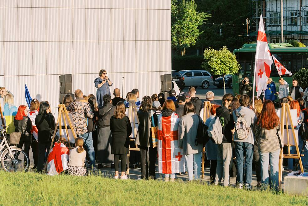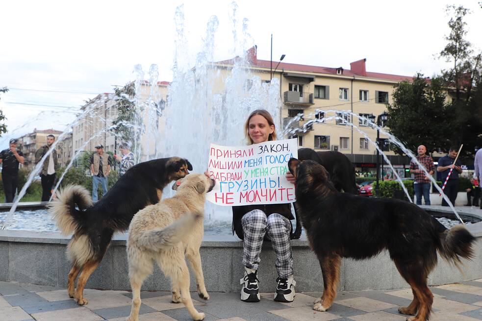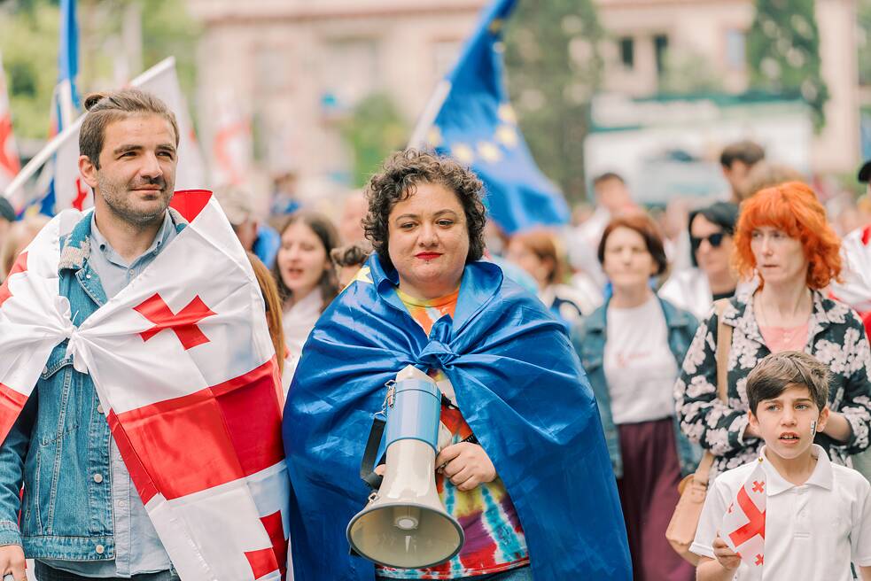 Mezi demonstranty si všímáme ženy s teenagerem zabaleným do ukrajinské vlajky. V rukou drží obrovský transparent. Ukazuje se, že Žeňa a její syn Fjodor pocházejí z Ruska. Ze země odešli před dvěma lety, když Rusko zaútočilo na Ukrajinu.Je přesvědčena, že nyní záleží především na účasti těch zemí, které mohou tento proces skutečně ovlivnit. „Žádné kompromisy, ale tvrdé sankce pro všechny, kteří se na přípravě a přijetí zákona podíleli, a v žádném případě by Gruzie neměla být zbavena statusu kandidátské země EU,“ je přesvědčena Žeňa. „To by znamenalo jediné, že EU prohrála a putinismus opět zvítězil. Naopak je třeba urychlit integrační proces. Měli bychom vynaložit veškeré úsilí, aby v Gruzii na podzim nedošlo k volebním podvodům, a pokud ano, měli bychom tu vládu bezpodmínečně uznat za nelegitimní. Nedělat nic, co by Gruzii opět přivádělo k podřízenosti Rusku, a udělat vše pro to, aby se vymanila ze spárů tohoto impéria. Je potřeba maximálně mediálně pokrýt protesty, aby nikdo v Evropě ani ve světě nepochyboval o tom, že lid a vláda v Gruzii nejsou stejní a že Gruzínci chtějí něco jiného.“