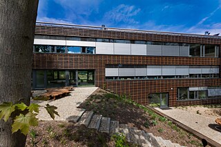 Střecha další z budov centra je řešena jinak – namísto rostlin jsou na ní umístěny fotovoltaické panely, které pokryjí zhruba čtvrtinu spotřeby elektřiny v areálu. Voda z této střechy stéká do podzemní nádrže o objemu 30 kubických metrů a využívá se ke splachování toalet, čímž se snižuje spotřeba pitné vody. Další zajímavostí je kořenová čistička šedé vody, která umožňuje ekologické čištění odpadní vody z umyvadel nebo sprch. Teplotu v interiéru v letním období pomáhá snižovat promyšlený systém zaclonění oken. Interiéry jsou i aktivně chlazené pomocí úsporných tepelných čerpadel typu země-voda (tedy s využitím geotermální energie).