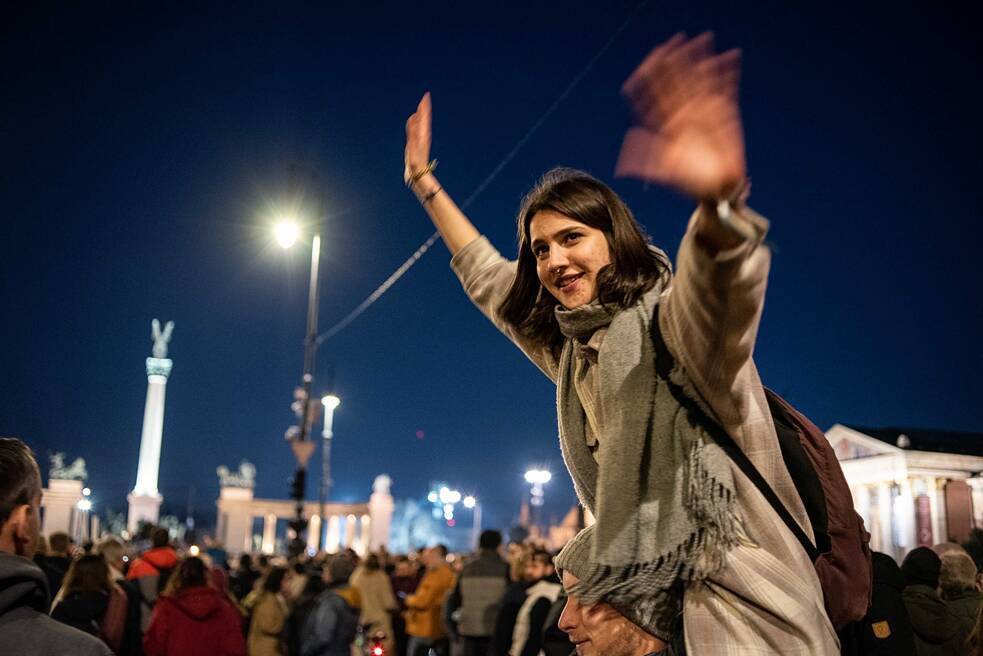 „Uns gefällt, dass der Protest nicht von politischen Parteien, sondern von der Zivilgesellschaft organisiert wird. Außerdem hat es in Ungarn schon sehr lange keinen großen Protest mehr gegeben“, sagt eines der Mädchen. „Es ist schön, dass es keine Parteifahnen und keine Reden von Politikern gibt.“ Gerade das habe viele überzeugt, zu der Demonstration auf dem Heldenplatz zu kommen.