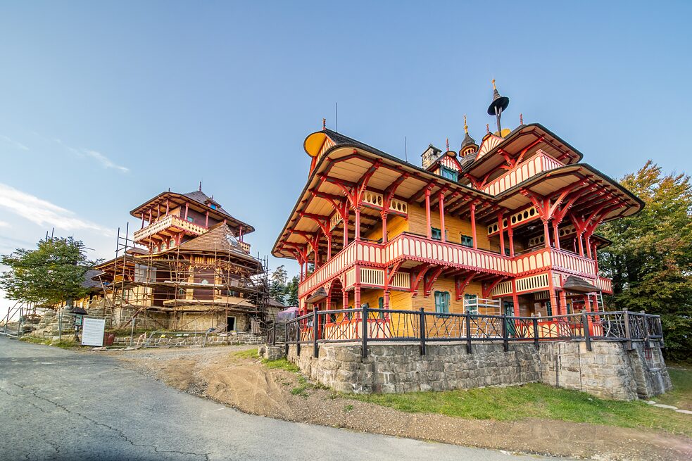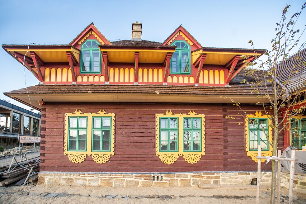 Libušín ist ein Fachwerkbau, den der slowakische Architekt Dušan Jurkovič im Jahr 1899 vollendete. Zum Ensemble gehört auch die benachbarte Baude Maměnka, die noch etwas früher fertig war als die Wirtshütte Libušín. Jurkovič entwarf beide Gebäude in einem sogenannten Volksjugendstil (Tschechisch: lidová secese) und beteiligte sich auch 48 Jahre später an der Reparatur beider Bauden. Der ursprüngliche Denkmalwert der Baude Libušín ging leider bei dem Brand im Jahr 2014 verloren. „Die Baukonstruktion war zu 85 Prozent beschädigt, bei der technischen Ausstattung waren es 100 Prozent und bei der Inneneinrichtung 90 Prozent“, so Olga Holišová vom Walachischen Freilichtmuseum (Valašské muzeum v přírodě – VMP), das das Objekt in Pustevny verwaltet.
