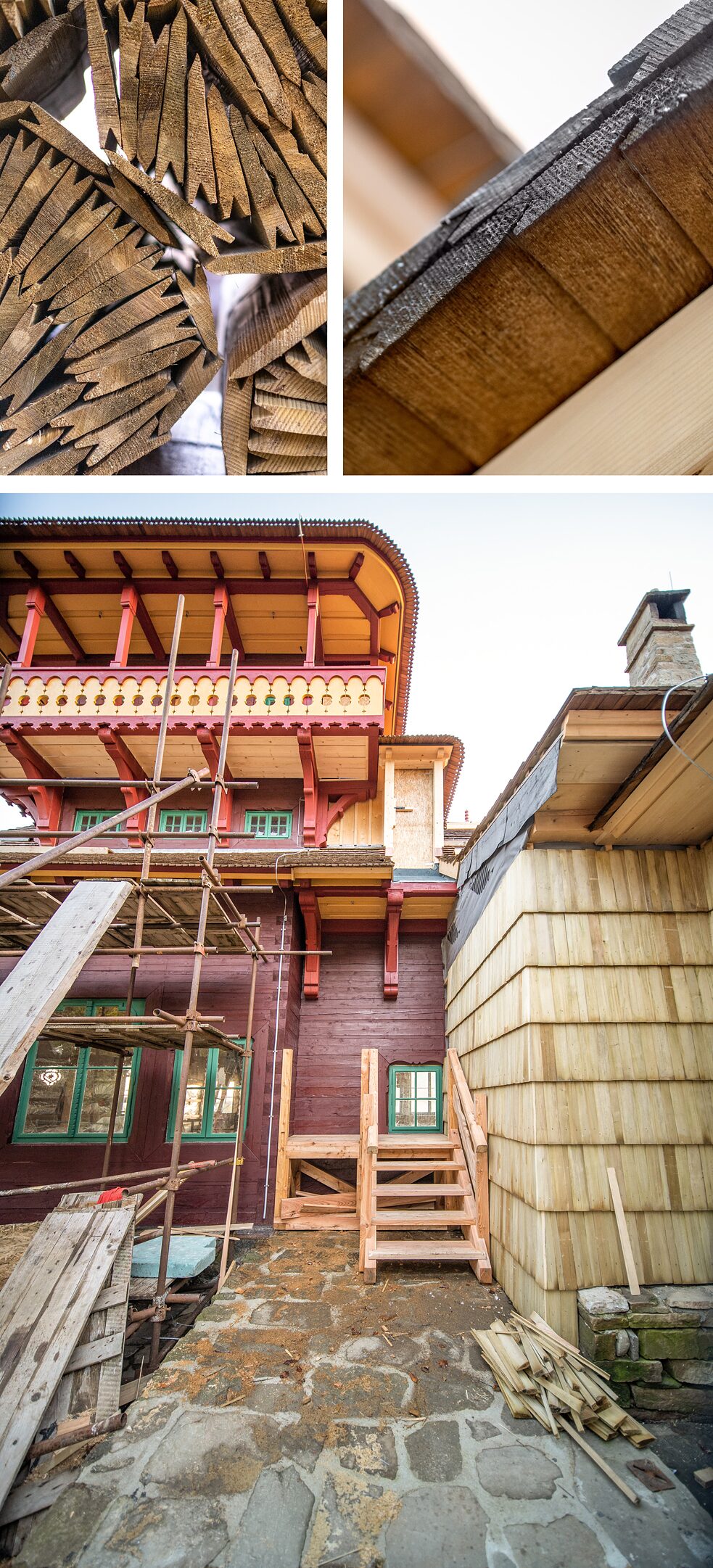 „Als ich in der Ausbildung war, musste ich einen Stoß Holz sortieren in radial, halbradial und tangential geschnittenes Material. So etwas macht man heute nicht mehr. Anstatt die hochwertigsten halbradial geschnittenen Bretter anzubieten, versuchen die Handwerker heute die Kunden zu überzeugen, Bretter aus Furnierholz zu kaufen. Denn das krümmt sich nicht und ist billiger. Und weil das so gemacht wird, merkt niemand, dass es nicht massiv ist“, so Dvořák. Solches Holz gehöre aber nicht in Denkmäler. Und deshalb könnten in Pustevny die „modernen Verbesserungen“ langfristig nicht bestehen. Die Qualität der Arbeit bemisst sich nicht nur danach, ob das Holz manuell oder mit der Maschine bearbeitet wurde. Von grundlegender Bedeutung ist auch die Auswahl hochwertigen Materials und die Art, wie es getrocknet wird.