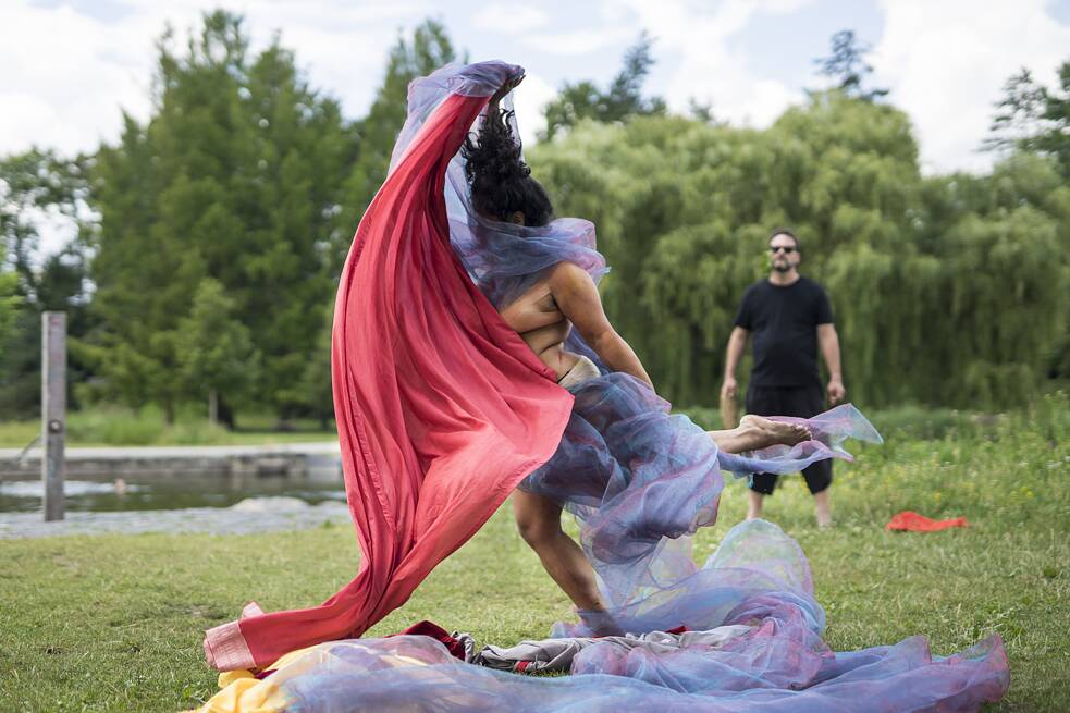 Annie und Beth erklären, wie man Rituale queer macht, wie man einen sensiblen Porno dreht, wie man die Landschaft des weiblichen Körpers nicht nur als zu erforschendes Objekt, als schwarzes Loch einer alles verschlingenden Mutter oder idealisierte jungfräuliche Artemis präsentiert. Sie treten gegen Frauenfeindlichkeit und Objektifizierung an. Alles in ihrer Konzeption hat irgendwie einen Bezug zum Leben. Selbst die Einbettung der Elemente in Beziehungen. Später lese ich in Annies Buch über den Orgasmus, dass wir auch andere erotische Erlebnisse haben als einfach nur Sex. Ebenso kann auch das Baden in einem See erotisch sein. Das Wasser tritt zwischen uns, bildet eine weitere anwesende Entität.