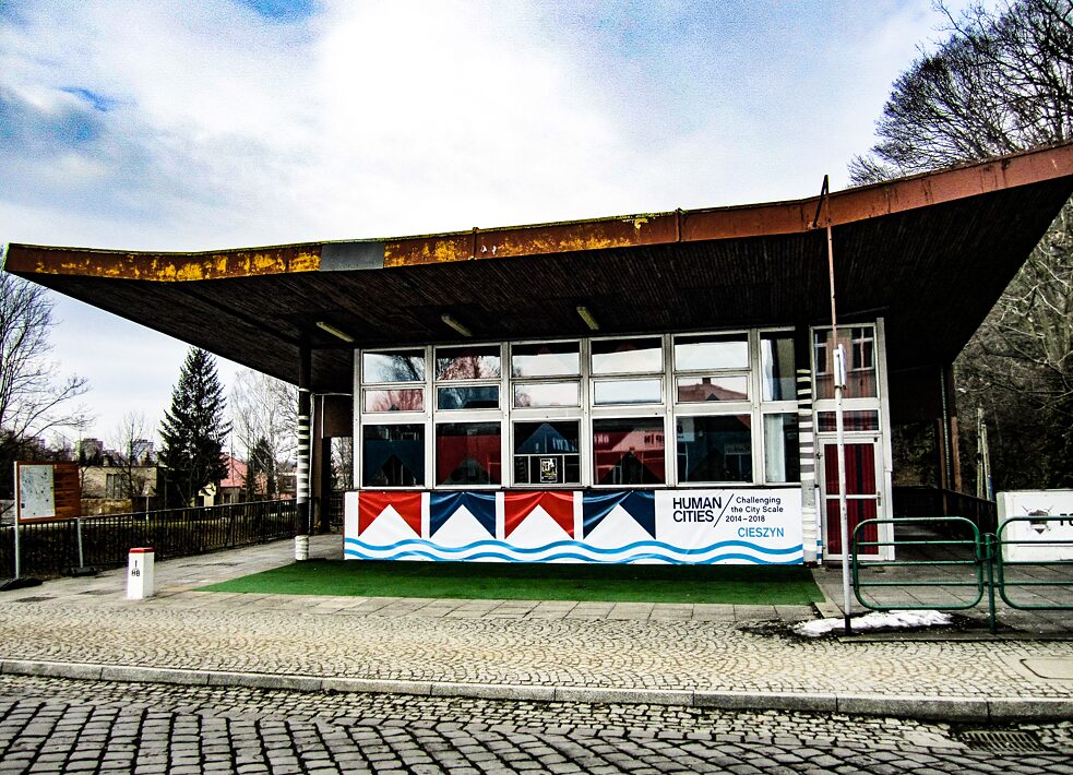 Von Bobi sind es nur ein paar Schritte zum alten Grenzübergang auf der Brücke der Verbrüderung. Ich trinke noch einen Presso mit Argir, ein Berg von einem Kerl mit Vollbart und Basecap. Er ist Grafikdesigner, gebürtig aus dem nahen Karvina, und kehrte nach einem mehrjährigen Aufenthalt in London mit der Familie zurück in heimische Gefilde, wo er nun versucht die Dinge zu einem Besseren zu wenden. Im Rahmen des Projektes Human Cities beteiligte er sich an der Revitalisierung eben jenes Gebäudes am Grenzübergang, eines Werkes der Architekten Zbigniew Kołder und Józef Raszka. Eines heruntergekommenen, vergessenen, unterschätzten und mehrmals als hässlichstes Bauwerk der Region betitelten Gebäudes, das zum Abriss vorbestimmt ist. Eines Beispiels avantgardistischer Architektur des späten Modernismus.
