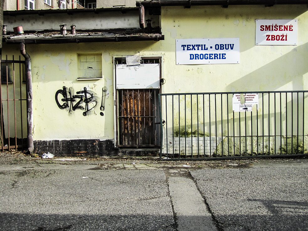 Einer der Obdachlosen, die von der Brücke der Verbrüderung leere Wein-Tetra Paks in die Olsa werden, ist Macek. Ich treffe ihn, als er auf der Fensterbank einer der zwanzig vietnamesischen Kioske sitzt, die die gesamte Hauptstraße auf der tschechischen Seite Těšíns säumen. Dort, wo sich die Hauptstraße mit der Prager Straße kreuzt. Rap schallt aus seinen Boxen. Ich besteche ihn mit einem Zwanzigkronenstück und zwei Zigaretten, damit er mir was erzählt, über sich und die Stadt, in der er lebt. Er sagt mir, dass er in Übersee war, dass er in Prag gearbeitet hat, alles habe er gesehen dort, sogar Haifische. Und dann ging alles in die Hosen. „Ich trinke hier diesen Billigfusel, ne, so nenne ich das, Fusel. Den für dreißig Kronen, in der Plastikflasche.“ Rüber ins polnische Těšín geht er angeblich manchmal. Aber die Polen rufen seinetwegen die Polizei. Sie sollen angeblich dahin gehen, wo sie herkommen. Es ärgert ihn, dass die Polen auf die tschechische Seite Pakete abholen gehen. Und ob ich ihm nicht meine Nummer geben würde. Er sitze immer beim Billa-Supermarkt. Oder beim Bahnhof, gegenüber vom Piast.