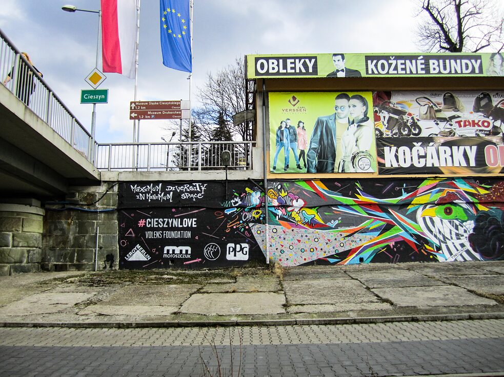 Vom alten Grenzübergang keine Spur. Verschwunden die Pässe, die Schranken, die Zöllner in grün. Im Gebäude, wo sie die verdächtigen Ameisen abtasteten, näht man jetzt maßgeschneiderte Lederjacken oder Pelzmäntel. Unter der Brücke ein Radweg, Abiturienten fotografieren sich vor Graffitis für die Absolventenaushänge, an beiden Ufern tummeln sich Dutzende Jogger in Funktionskleidung, die man neben Unterwäsche für übergroße Oberweiten im Gebäude direkt gegenüber erwerben kann – also dort, von wo man dann mit Tüten voll von rosa gefärbtem Puffreis aus Polen wieder zurückkommt. Thermoactive System mit nahtloser Technologie. Eine Bohrmaschine Marke Makita. Nusswafelki. Polnische und europäische Flaggen, polnische und tschechische Beschriftung. „Maximum Diversity in Minimum Space“ haben sie hierhin gesprayt. Die Ameisen sind wie vom Erdboden verschluckt.