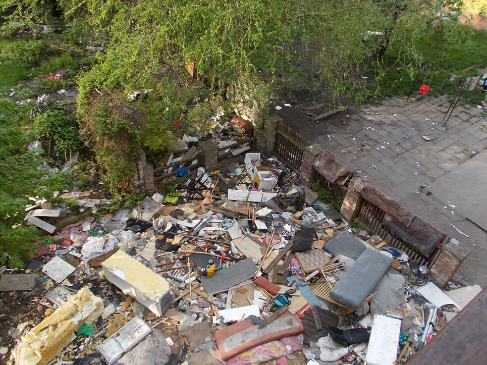 Bald bleiben wir vor einem Haus stehen, meine Begleiterin kramt in der Hosentasche nach dem Schlüssel und erzählt nebenbei, dass Kinder neulich die Tür eingetreten haben und die Stadt sie nicht ersetzen will. Genauso wie die eingeschlagenen Fenster, auch das ist nichts wirklich Neues oder Überraschendes. Einen Spielplatz gibt es nicht. Die Straße ist der Spielplatz hier, die Müllhalde auch, genauso wie die Parkplätze mit herumliegendem Reifen. Statt Bänken gibt es vor dem Haus nur Poller oder blanken Boden. Statt jeglicher Infrastruktur, einer städtischen Grünfläche oder eines Parks, nur ein indifferenter Zwischenraum, viel Brachfläche voller Müll und rundherum diese große Straße, die statt eines Grabens die Stadttore schützt.