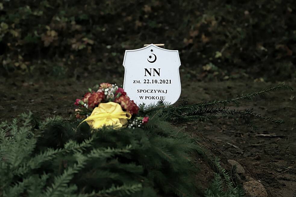 „Ruhe in Frieden“ sagt das kleine weiße Schild. Hier, auf dem Friedhof der muslimischen Gemeinde Bohoniki in der ostpolnischen Wojewodschaft Podlachien, liegt ein Mensch begraben, der am 22. Oktober 2021 tot in der Sperrzone an der Grenze zu Belarus gefunden wurde. Es ist ein Grab ohne Namen. Die Gerichtsmedizin fand nur heraus: NN – ein Mann, etwa 30 Jahre alt, mit dunkler Hautfarbe – war an Flüssigkeitsmangel und Unterkühlung gestorben.NN ist einer von vier hier nach muslimischer Tradition begrabenen Opfern der humanitären Krise an der ostpolnischen EU-Außengrenze. Hinter der Friedhofsmauer beginnt der letzte Urwald Europas. Bis zur Grenze sind es knapp zehn Kilometer. Neben NN liegt Halikari Dhaker – geboren und gestorben am 14. November 2021, beerdigt am 23. November. Da kämpfte seine Mutter Avin Ifran Zahir im Kreiskrankenhaus Hajnówka noch um ihr Leben. Am 3. Dezember starb die 38-jährige Kurdin aus dem Irak dort – an den Folgen der Fehlgeburt, von Hypothermie und Trinkwassermangel. Ihr Mann und ihre fünf weiteren Kinder befinden sich in einer Aufnahmestelle und werden psychologisch betreut.