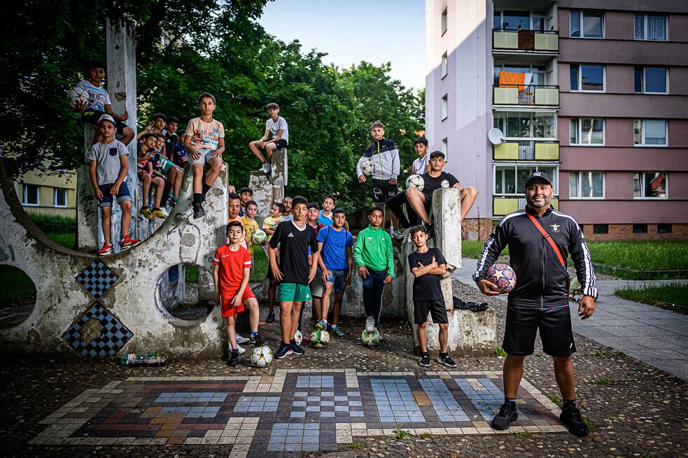 Dann kam der Ball ins Rollen – Rodrigo brachte aus seiner Geburtsstadt eine Garnitur Fußball-Trikots mit. Lukáš verteilte die Trikots an die Romakinder vor Ort, die auf dem rissigen Betonplatz vor den Plattenbauten kickten, und begann sie zu trainieren.Fußball hat zwei wichtige und unbestrittene Charakteristika. Erstens ist es ein Mannschaftssport und das relativ große Spielfeld ermöglicht vielen Kinder das Mitmachen. So können auch diejenigen teilhaben, die gerne in einer Gruppe sind, aber nicht so viel rennen wollen und es lieber um die Mittellinie herum ruhig angehen lassen. Das zweite Merkmal ist, dass man außer einem Ball eigentlich nichts braucht, um Fußball zu spielen. Fußball ist ideal für Graswurzelinitiativen. Das Spiel ist niedrigschwellig und kann quasi überall gespielt werden.