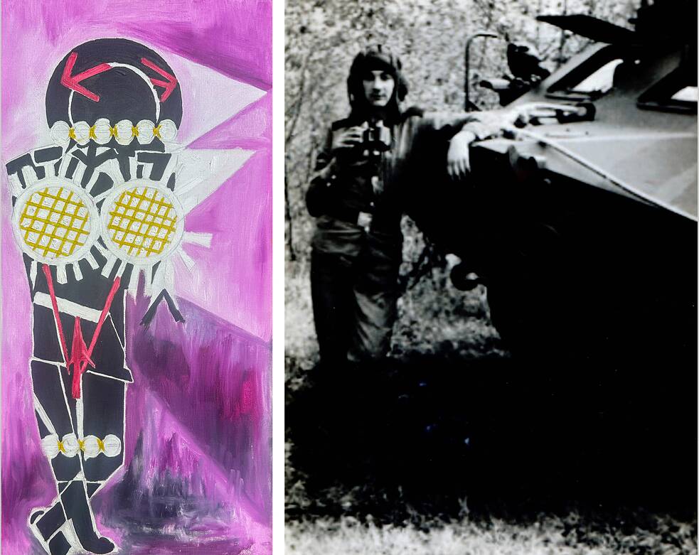 Marushka während der Ausstellung vor ihrem Triptychon „Frau und Krieg“ | Foto: © Ulrike Butmaloiu