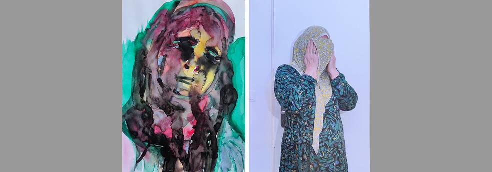 Bilderserie „Muttermal / Are You a Refugee?“, Aquarelle 2016, Fotografien 2023, Hamburg | © Marushka | Foto: © Lars Krüger | Collage: © Chris Jordan