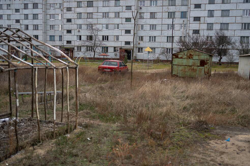 Das Neujahrsfest feierte die Familie Hromov allein. Verwandte und Freund*innen aus anderen Regionen kamen wegen der Straßenkontrollen und der Abgeschiedenheit der Geisterstadt nicht. Mehr als einmal dachten Olena und Anton daran, wegzuziehen. Doch der Krieg hielt sie davon ab. „Hier hört man kaum Fliegeralarme. Und es gibt keine Raketenangriffe. Manchmal fliegt eine Drohne über uns hinweg. Aber ich fühle, dass es hier sicherer für meine Kinder ist als in Kyjiw oder Lwiw. Ich bin Baggerfahrer, reiße Gebäude ab und weiß, wie leicht die Decken von Kindergärten und Schulen einstürzen. Der Gedanke, dass meine Kinder während eines Beschusses in einem solchen Kindergarten sein könnten, macht mir Angst“, erklärt Anton, warum er sich weiterhin von der Zivilisation fernhält.