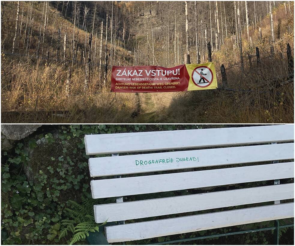 Das teile ich sicher mit denjenigen, die seit einigen Jahren immer stärker Kritik üben am Nationalpark. Die Klagen gegen dessen Gründung vor drei Jahrzehnten anstrengen oder gegen gesperrte Wege in der Kernzone demonstrieren. Besonders viel kritisiert wird die Sperrung eines konkreten grenzüberschreitenden Weges nach Tschechien und eines Grenzpfades durch die Kernzone. Interessanterweise nur von örtlichen Wanderern von deutscher Seite, die das damit begründen, dass sie doch früher − also noch zu DDR-Zeiten − immer hier langgegangen seien und das niemandem geschadet habe.