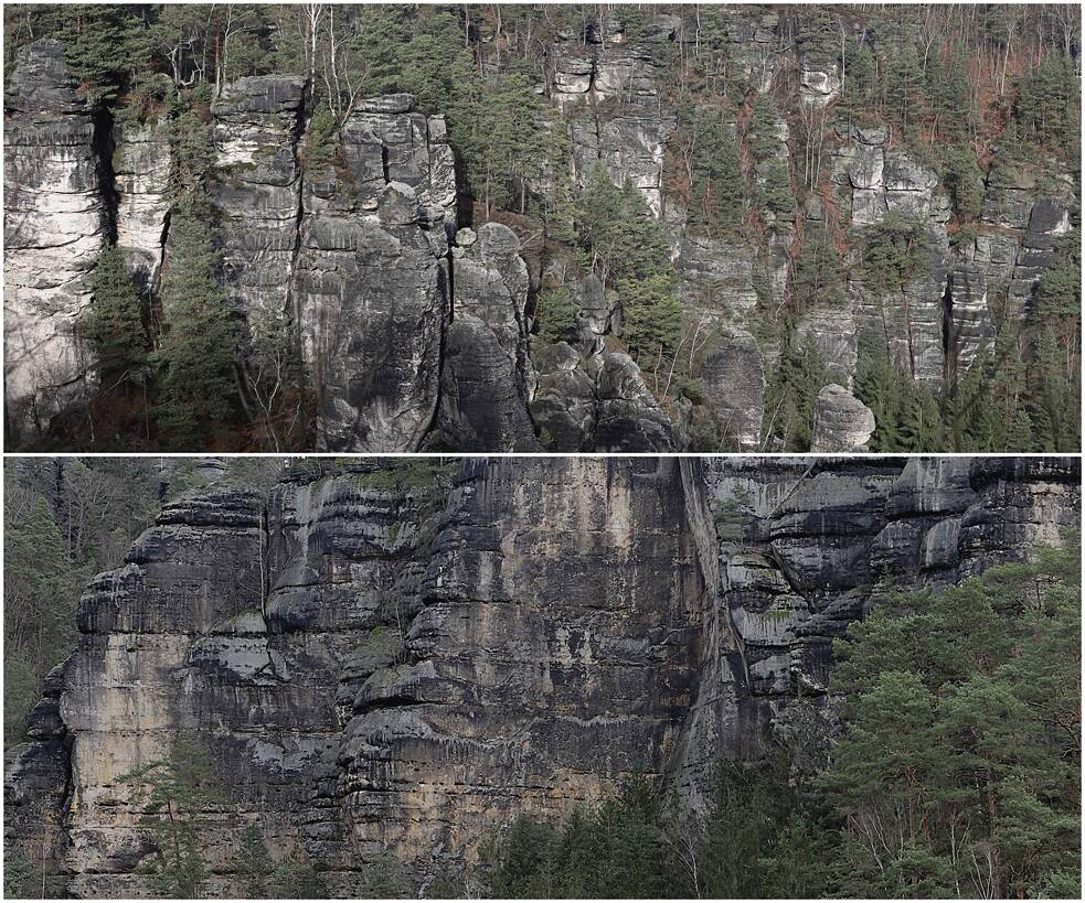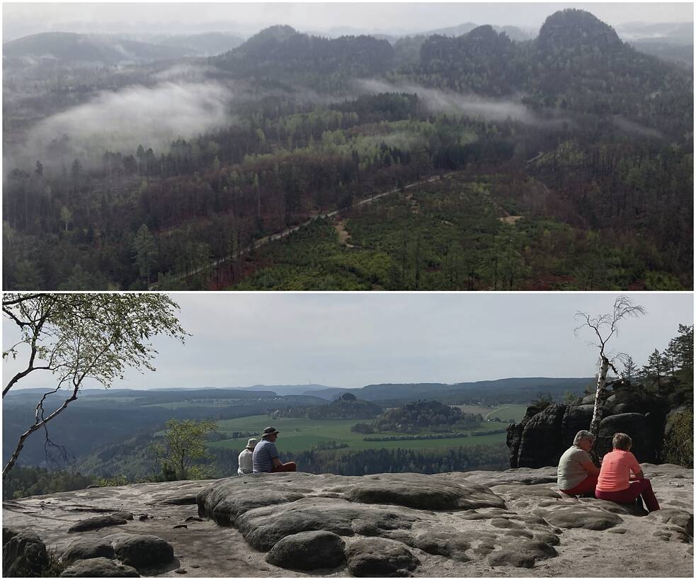 Großzügig vergessend, dass heute nur deshalb wieder Wanderfalken in den Sandsteinfelsen brüten, weil sie in den 90er Jahren neu ausgewildert und geschützt wurden, nachdem sie wegen Agrarchemikalien in der DDR ausgestorben waren. Großzügig vergessend, dass hier − außer nach der Nazi-deutschen Annexion des Sudetenlandes − schon immer eine Grenze verlief, die offiziell nie so frei begehbar war wie heute. Nur: Bitte außerhalb der strengsten Naturschutzzone.