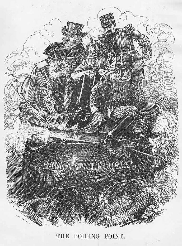 Der Balkan wurde das „Pulverfass Europas“ genannt. Diese Karikatur erschien im Oktober 1912 im britischen Satiremagazin „Punch“.