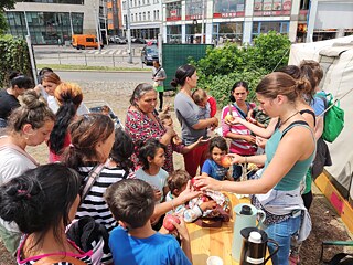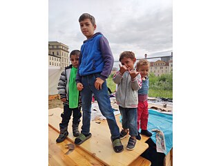 Jsme na plácku mezi „Hlavákem“ a „Maliňákem“, kde se romské rodiny zdržují. Povídám si s Irinou, svěřuje se mi, že žije v Berehovu v osadě, kde žijí i další rodiny, které přijely sem, ukazuje mi fotky z oslavy narozenin svého syna. Pokoj vypadá slavnostně: na stole dort a flaška koly, bílé záclony, útulný, ale víceméně prázdný pokoj. Přemýšlím, jestli má normální dveře nebo koberec, jak jsem viděla na fotkách z Berehova v některých domech. Irina má pět dětí, ukazuje mi další fotky: jak dcery jdou do školy nebo se chystají na ples.„Nemám manžela, takže se musím postarat sama, a sůl už je za 80 hřiven,“ stěžuje si mi Irina, „všechno je tak drahé, práce není a já už nedostávám peníze na děti, co mám dělat?“ ptá se Irina jen tak, možná sama sebe, možná mě, možná Boha. Je mi jí líto. Chápu ji, přijela sem vlakem zdarma, aby dostala peníze, aby mohla svým dětem koupit bepanthen a šampon a oblečení a trochu soli, brambor a bonbonů. Povídám si s dalšími, Natalie mi vypráví, že má těhotnou dceru, která by potřebovala vitaminy, její miminko má nízkou hmotnost a mají obavy.