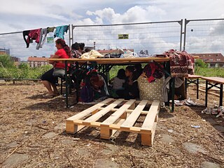 Sedám si na slunci ke stolům, pod nimiž minulou noc spali lidi, kteří se nevešli do stanů, a začínám vyplňovat papíry jeden po druhém. Ženy mají vízum, jejich děti také, nemají však adresu, takže pravděpodobně další dávky nedostanou. Snažím se jim to vysvětlit, samy to chápou, ale bez peněz si ubytování nenajdou. Ptám se, jestli byly v humanitárním středisku ve Vyšních Lhotách, prý ano. Popisují to jako vězení, kam se ony i děti bály jít…Když jste Romka, mnoho věcí vnímáte jinak. Především jakékoliv symboly represe, ke kterým patří například bílí muži, policajti, ostnaté dráty, ochranka a také zámky. Bojíte se toho, protože víte, že bílá společnost, do které nepatříte, se pomocí toho všeho „chrání“ i před vámi. Když vidíte bývalá kasárna, tak se fakt bojíte, že vás tam zavřou nadobro. Nemáte nejmenší důvod věřit mocným bílým lidem, protože moc dobře víte o pogromech, holocaustu a rasismu. Víte, že vás všude nesnáší a že by se vás nejraději zbavili. Víte, že jste „cikáni“ a bojíte se bydlet vedle bílých. Víte, že musíte zůstat pohromadě, v tom je vaše jediná síla. A tak raději zůstanete venku.