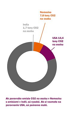 A čo teraz? Sú nemecké emisie CO2 v porovnaní s inými krajinami teda vysoké alebo nízke? Pre dobré porovnanie musí byť správny základ. A keďže sú krajiny sveta veľmi rozdielne vo veľkosti, v tomto prípade je užitočné porovnanie na obyvateľa. A tu sa ukazuje, že emisie v Nemecku v roku 2019 dosiahli 7,8 ton CO2 na osobu – v medzinárodnom porovnaní je to dosť vysoká hodnota. Napríklad v Indii boli v tom istom roku len 1,7 ton CO2 na osobu. V USA však každý človek spotreboval v priemere 14,4 ton ročne. Výberom základu pre porovnanie môžete teda pri mnohých štatistikách zmeniť záver.Čo robiť?