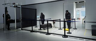 In der Vergangenheit funktionierten Überwachungsnetze und -infrastrukturen weitgehend im Hintergrund oder wurden versteckt. Mittlerweile sind wir sichtbare Bestandteile dieser Systeme. In User Flow versucht Valia Festov, dem Betrachter eine Erfahrung zu vermitteln, die in der Gesellschaft der Zukunft Realität werden könnte, wenn wir weiterhin Systeme für soziale Kontrolle einsetzen, um Krisen zu bewältigen. Beim Betreten dieser Installation wird der Besucher aufgefordert, sich zuerst einer Leibesvisitation und anschließend einer psychologischen Beurteilung zu unterziehen; abschließend wird er mit einem Monitor konfrontiert, der mit einer 3D-Kamera und einem künstlichen neuronalen Netz mit Gesichtsausrichtung ausgestattet ist, das ihn auffordert, näher zu treten, damit es ihm eine Flüssigkeit in den Mund sprühen kann.User Flow veranschaulicht, wie Überwachungs- und Kontrollsysteme, die wir als selbstverständlich betrachten – etwa die Sicherheitskontrolle am Flughafen oder die Identifizierung per Gesichtserkennung – repressiv werden können, vor allem, wenn sich diese Systeme auf Technologie stützen. „Die Warteschlange und die Durchsuchung sind für alle Betroffenen sichtbar, damit das Verhalten bei der Durchsuchung normalisiert wird, aber es geht auch darum, Fürsorge zu demonstrieren und die Idee des „In-Sicherheit-Seins“ zu dramatisieren”, schreibt Festov in einem Artikel über User Flow. „Die Frage ist: „Können wir Systemen vertrauen, die unsere Beziehungen zueinander quantifizieren und eine neue gesellschaftliche Ordnung schaffen? Oder werden das Design dieser Systeme, ihre Performanz und ihre soziale Normalisierung so dominant werden, dass sie uns unsere Entscheidungen abnehmen können?”