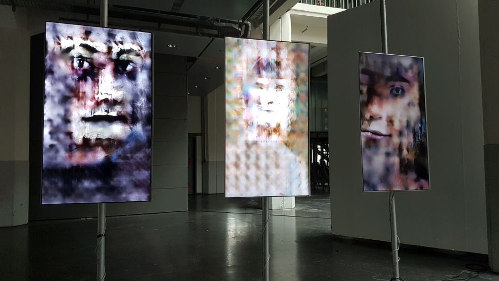 "Mistaken Identity" consists of three rendered videos, based on the artist's neural glitch technique
