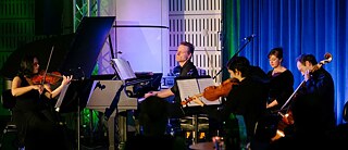 While the author (on piano) has used digital means to compose and produce music for years, he prefers to perform in a purely acoustic setting, with an ensemble of classically trained musicians.