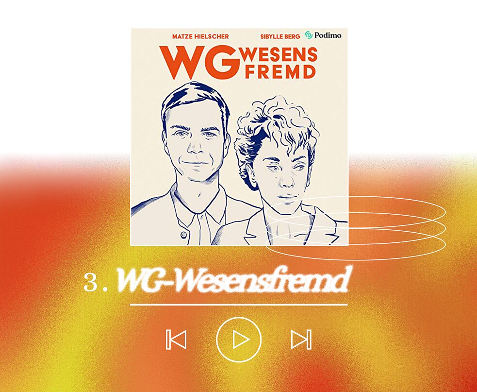 „WG-Wesensfremd“ - не зовсім літературний подкаст у класичному розумінні, але він одразу стане улюбленим. Його модерують швейцарська авторка Зібілле Берґ та німецький журналіст, автор Матце Гільшер. Минулого року вони зустрічались кожного другої неділі поговорити про життя, гроші, інтернет, батьківщину, кохання чи банально про відпустку. Для фанатів (навіть якщо поки що потенційних) творчості Зібілле Берґ цей подкаст - майже як її книжки, лише у лайв-форматі. Якщо вам хочеться йти по вулиці і сміятись самим до себе з почутих історій, тоді вам точно сюди. І якщо ви до цього не читали книжок Зібілле Берг, то після подкасту обов‘язково захочеться придбати щонайменше її недавній бестселер «GRM. Brainfuck», або почитати її колонку в Der Spiegel.Перший епізод
