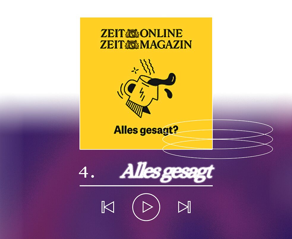До схожого розряду можна віднести подкаст продукції газетного видання Die Zeit «Alles gesagt», який цього року отримав нагороду як найкращий інтерв`ю-подкаст Німеччини. Цей подкаст вирізняється своєю тривалістю. Головний редактор онлайн-видання Die Zeit Йохен Вагнер та головний редактор Zeit Magazin Крістоф Аменд ведуть «потенційно безкінечні» інтерв‘ю з політичними діячами/діячками, авторами/авторками, журналістами/журналістками та іншими громадськими особистостями. Чому «потенційно безкінечні»? Правило одне, розмова триває до тих пір, поки гість не скаже ключове слово, що знаменує кінець. Найдовше інтерв´ю затягнулось на 521 хвилину. Серед літературних гостей можна зустріти бестселлер-авторку та феміністку Софі Пассманн, авторку, подкастерку та журналістку Аліс Хастерс, авторку, відому за Нетфлікс-продукцією роману «Неортодоксальна», Дебору Фельдманн та інших. Розмовляють про літературу, але й про все, що відбувається поза нею. Якщо ви плануєте довгу подорож, цей подкаст саме те, що вам потрібно!Епізод з Аліс Хастерс