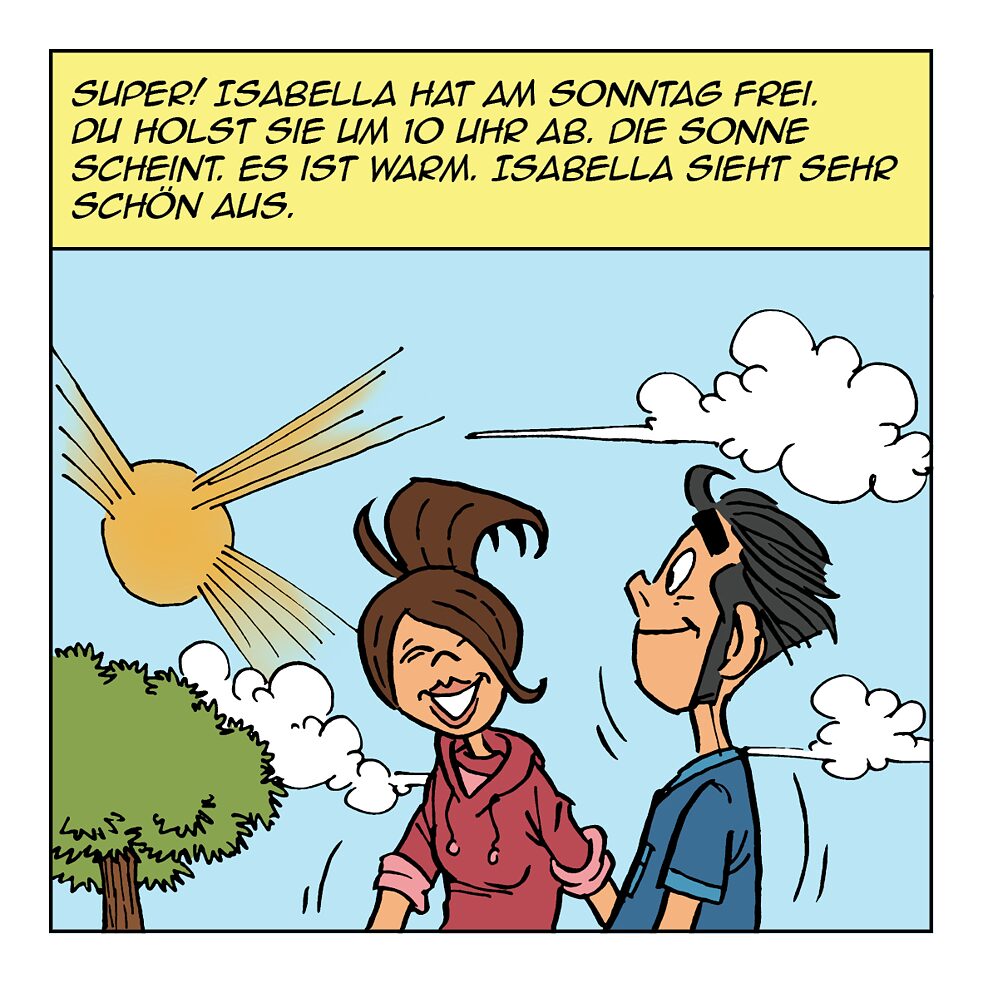 4. Ich frage Isabella: „Hast du auch am Sonntag Zeit?“