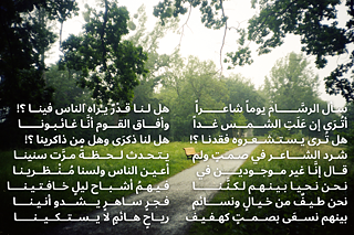 إن الثقة هي الشعور بالاطمئنان والراحة تجاه ذلك الشئ أو الشخص محل الاختبار. هي اليقين بأن ذلك الموثوق موضوعٌ في محله داخل دائرة الاطمئنان. وأول درجات الثقة هي ثقة الإنسان بنفسه وإيمانه بذاته، التي إن غابت، فلا محل للثقة في أي شئ أو شخص آخر. وفي حالة المبدع، تكون الثقة لديه هي يقينه بمنتوجه وأثره على المجتمع حوله. يقين بأهميته وإيمان بمدى تأثيره. لذلك، فإن العمل الفني الذي أمامكم (الصورة والقصيدة) هو خير تصوير لصراع المبدع مع ذاته بدءاً من تشككه وفقدانه للثقة في أهميةإنتاجه إلى الثقة بمدى تأثيره ومدى ثقة المتلقي في صدق المبدع. الشاعر هنا يتحدث بلسانه ولسان الرسام والعازف والمصور.
