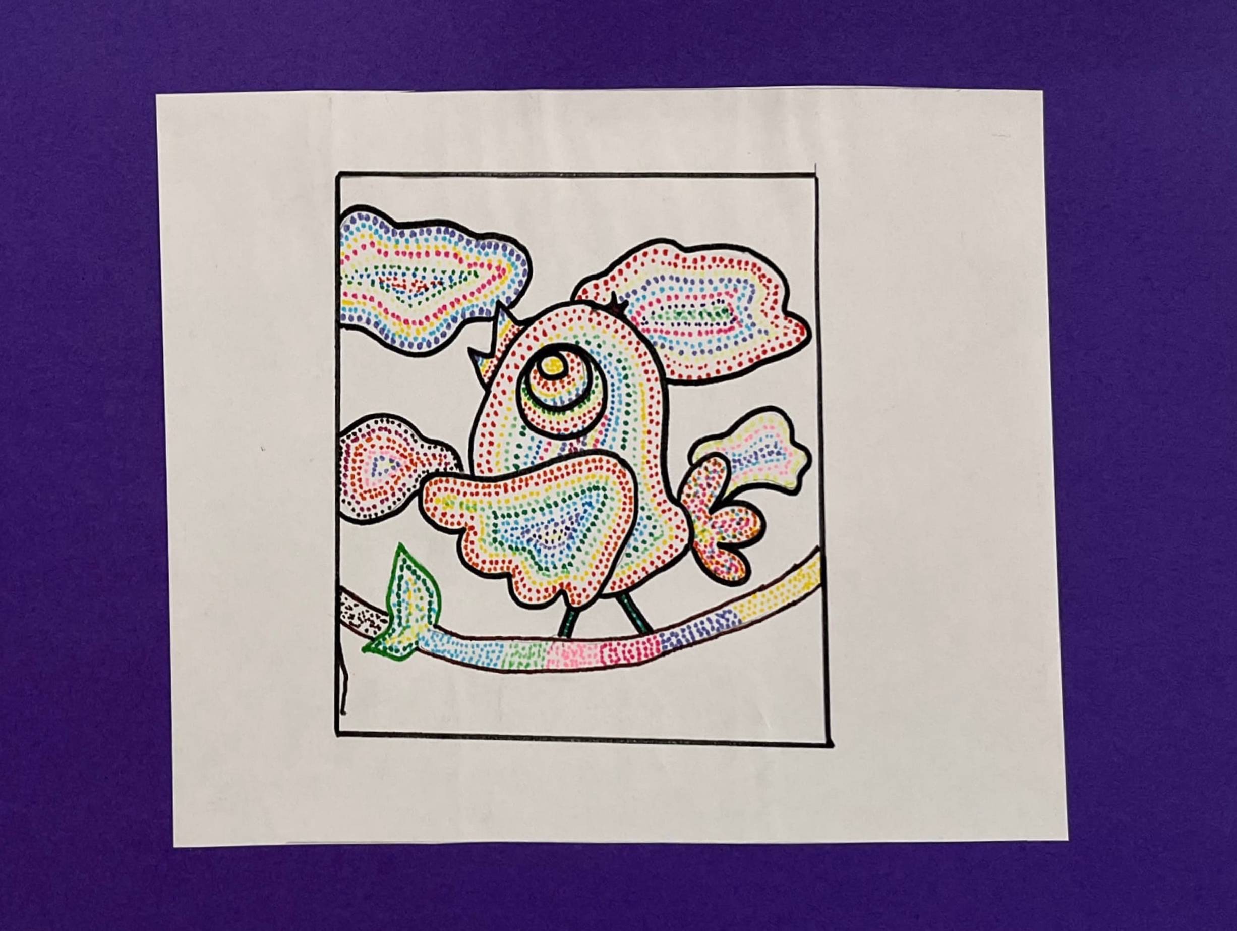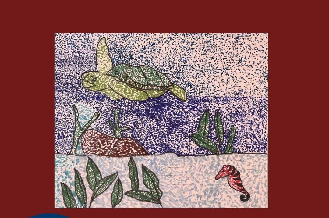 This is me, in my story. I have drawn a beach and this is my brother Faiz, also on the beach. This is the sea, these are hills that contain sand. This is a tropical tree and these are the clouds and the sun. I am the bird here, because some birds are free, while some birds are caged, which is not good. And I can fly and go anywhere in the world and I don't have to pay anything to go for a flight.
