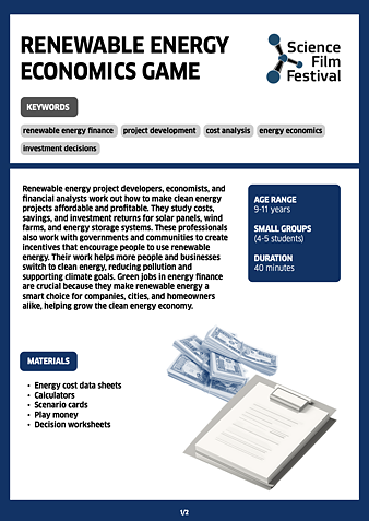 A financial role-play where students calculate the costs and benefits of renewable energy investments for a household.