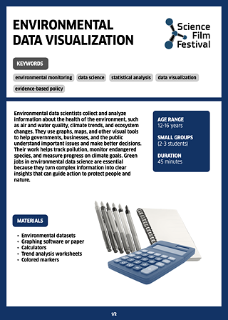 Environmental data scientists collect and analyze information about the health of the environment, such as air and water quality, climate trends, and ecosystem changes. They use graphs, maps, and other visual tools to help governments, businesses, and the public understand important issues and make better decisions. Their work helps track pollution, monitor endangered species, and measure progress on climate goals. Green jobs in environmental data science are essential because they turn complex information into clear insights that can guide action to protect people and nature.