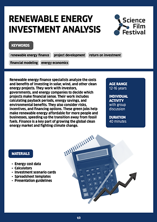 Students evaluate renewable energy investment scenarios and calculate financial returns and environmental benefits.