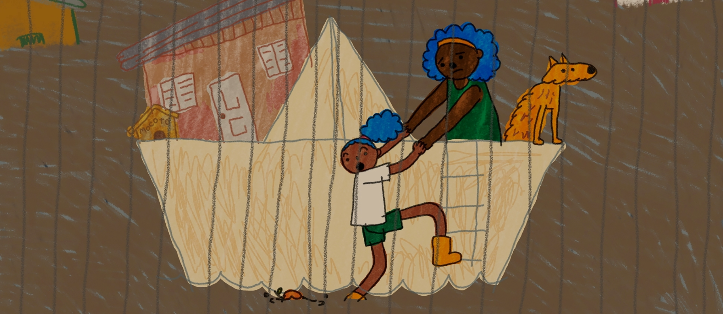 Por meio de seus desenhos, Aurora compartilha memórias de onde morou com sua família, vizinhos e seu cachorrinho, Mocotó. Em dias de chuva, ela adorava brincar ao redor da laranjeira, seu lugar favorito, até que uma forte tempestade chegou, trazendo medo e destruição. Com a ajuda de seus vizinhos e da comunidade, ela e sua família agora estão reconstruindo sua casa, seus playgrounds e suas vidas juntos, encontrando força na união e na resiliência.
