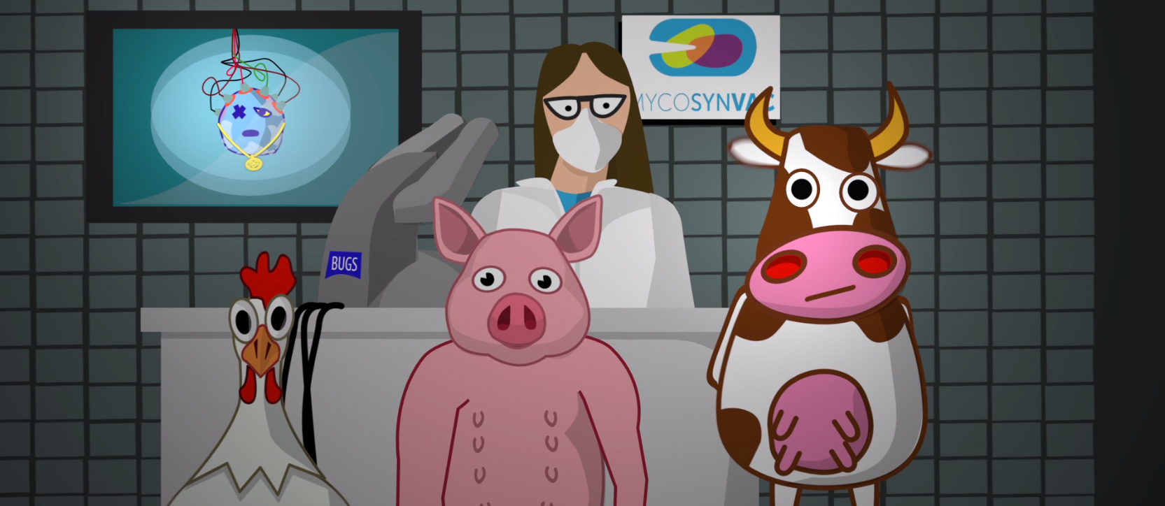MC Grease da Disease, A.K.A. Mycoplasma bovis, is a pathogenic bacterium that causes diseases in cows. Unharmed by even antibiotics, he lives unhindered like a rogue in the cow's lung, until the researchers of the project MycoSynVac discover a really ingenious way to fight him off. The scientists take a close relative of MC Grease, called Mycoplasma pneumoniae, and make him "an offer he can't refuse". Not unlike in a witness protection program, the scientists provide M. pneumoniae with a totally new identity by reprogramming his genome. By doing that, they’re able to create a synthetic vaccine that trains the cow's own immune defense system—which means that it becomes strong and smart enough to find and kick out M. bovis.