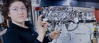 She leaps across the room, she stands in the window