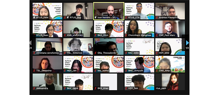 ในวันที่ 25 พฤศจิกายน 2564 ได้มีการจัดเวทีแลกเปลี่ยนทางออนไลน์ระหว่างเยาวชนจากภาคีเมืองหลวงเยาวชนยุโรปทั้ง 3 เมืองกับเมืองภาคีของโครงการริทัศน์ในประเทศไทยจำนวน 5 เมือง (เชียงใหม่ ขอนแก่น กรุงเทพฯ กาญจนบุรี และหาดใหญ่) โดยมีเยาวชนจำนวน 21 คนจากยุโรปและ 45 คนจากประเทศไทยเข้าร่วม การแลกเปลี่ยนให้โอกาสเยาวชนในประเทศไทยเรียนรู้จากเยาวชนในเมืองหลวงเยาวชนยุโรปเกี่ยวกับการทำให้เสียงของเยาวชนถูกรับฟังและโครงสร้างการจัดการของกลุ่มเยาวชนในการทำงานร่วมกับหน่วยงานเทศบาลและชุมชน ประเด็นสำคัญอื่น ๆ ที่แต่ละกลุ่มสนใจ และโครงการที่เป็นกรณีศึกษา