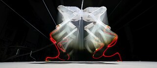 Eine Langzeitbelichtung lässt die hochdynamischen Bewegungsabläufe des Roboters SOLO 8 zum Tanz werden.