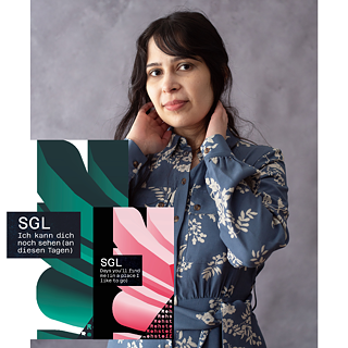 Simoné Goldschmidt-Lechner ist bereits durch ihren Debütroman Messer, Zungen (2022) mit kurzen, dichten Kapiteln und abstrakten Figuren aufgefallen. Ihre Novelle Ich kann dich noch sehen (an diesen Tagen)/ Days you’ll find me (in a place I like to go) liest sich schnell, eher wie ein Sog. Wir können das Buch drehen, zwischen deutsch und englisch abwechseln, auch hier schlägt die Autorin ähnlich wie in ihrem Romandebüt solidarische Netzwerke transatlantischer Bündnisse: Der Text betont Vielstimmigkeit, funktioniert nicht mit einer einzigen Sprache.