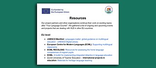 Across the EU, numerous projects and organisations are actively advancing work in heritage language education (HLE). Following the conclusion of Your Language Counts!, our project partners continue to engage in innovative initiatives that strengthen linguistic diversity and inclusion. We have compiled an overview of institutions and ongoing and upcoming projects from all over Europe that are shaping this evolving field.