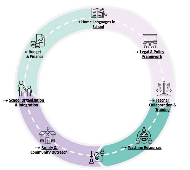 National school systems are responsible for mother tongue and foreign language learning. Thus, schools have to embrace the mother tongues of all its pupils, and not only of the ones growing up with the national language. The benefits of multilingualism should radiate on each citizen equally.