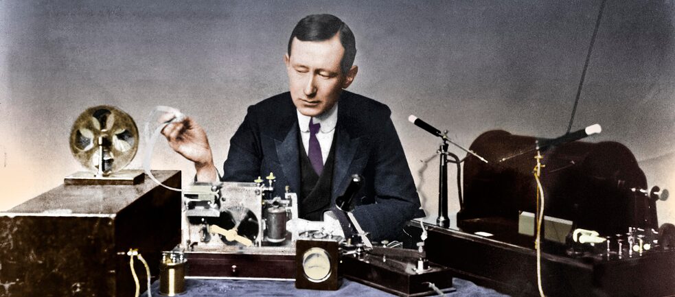 Bereits im Jahr 1895 gelang dem italienischen Ingenieur Guglielmo Marconi die erste drahtlose Übertragung von Ton über eine Distanz von 1,5 Kilometern. Er sendete damals von einem Strand in Wales die Worte „Can you hear me?“ („Kannst du mich hören?“) an seinen Assistenten George Kemp. Der antworte mit: „Yes, loud and clear“ („Ja, laut und deutlich“).
