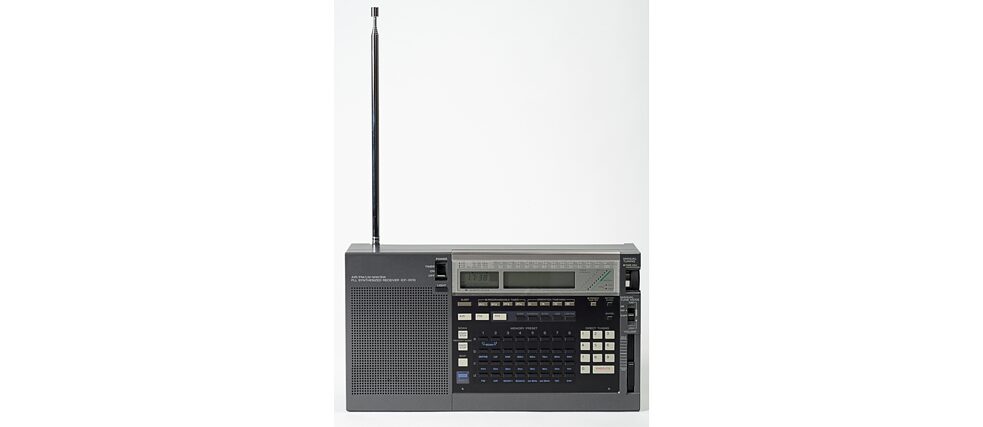Kommt Ihnen dieser Anblick irgendwie bekannt vor? Optisch war der Sony ICF-2010 genau das, was man sich unter einem Radiogerät aus den 1980er-Jahren vorstellt. Das tragbare Radiogerät war bekannt für seine hohe Empfangsleistung und Vielseitigkeit. Mit seinen – für damalige Verhältnisse – fortschrittlichen Funktionen wie digitaler Frequenzeingabe wurde es zum Favoriten der Kurzwellenhörer*innen, die darüber Nachrichtensendungen aus der ganzen Welt empfangen konnten.