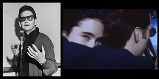 Porträt von Roy Orbison 1964 (links) und rechts eine Szene aus dem Musikvideo von „I drove all night“ mit Jennifer Connelly und Jason Priestley | © National Portrait Gallery, Smithsonian Institution; acquired through the generosity of Sidney Hart