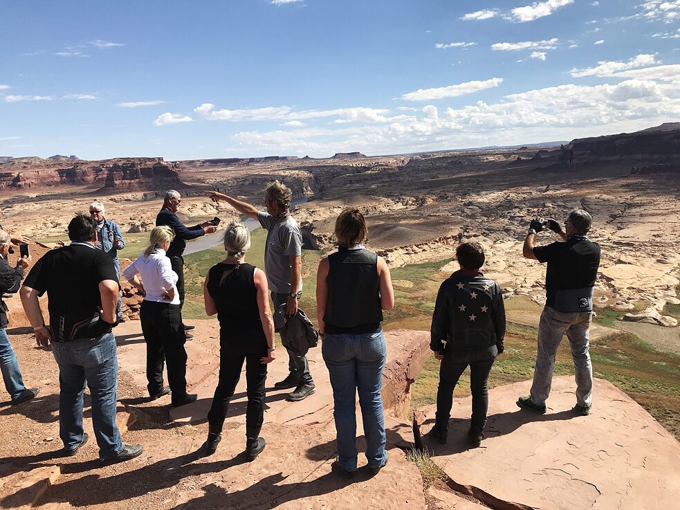 So, a few weeks ago, I drove down to southern Utah from my home in Salt Lake City to get some answers. In Mexican Hat, the same place I found the dentists from Hamburg, I met up with a tour group of 20 Germans who’d rented Harleys in San Diego. They were a more conservative group, nobody wearing leathers or hallucinating. I told them I was just wondering why they come here on Harleys.