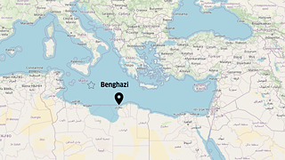 Bengasi ist eine libysche Hafenstadt im Nordosten des Landes. Sie liegt an der Großen Syrte, einer weiten Bucht des Mittelmeers an der Nordküste Libyens. | Karte: OpenStreetMap.org